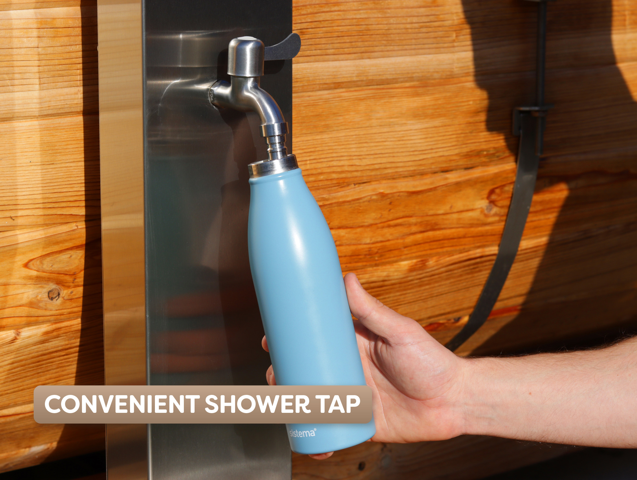 Enjoy wide, soothing water coverage, non-slip feet for stability, and rubber corner guards for comfort and safety. A convenient lower tap lets you fill your water bottle between sessions meaning no wet floors inside.