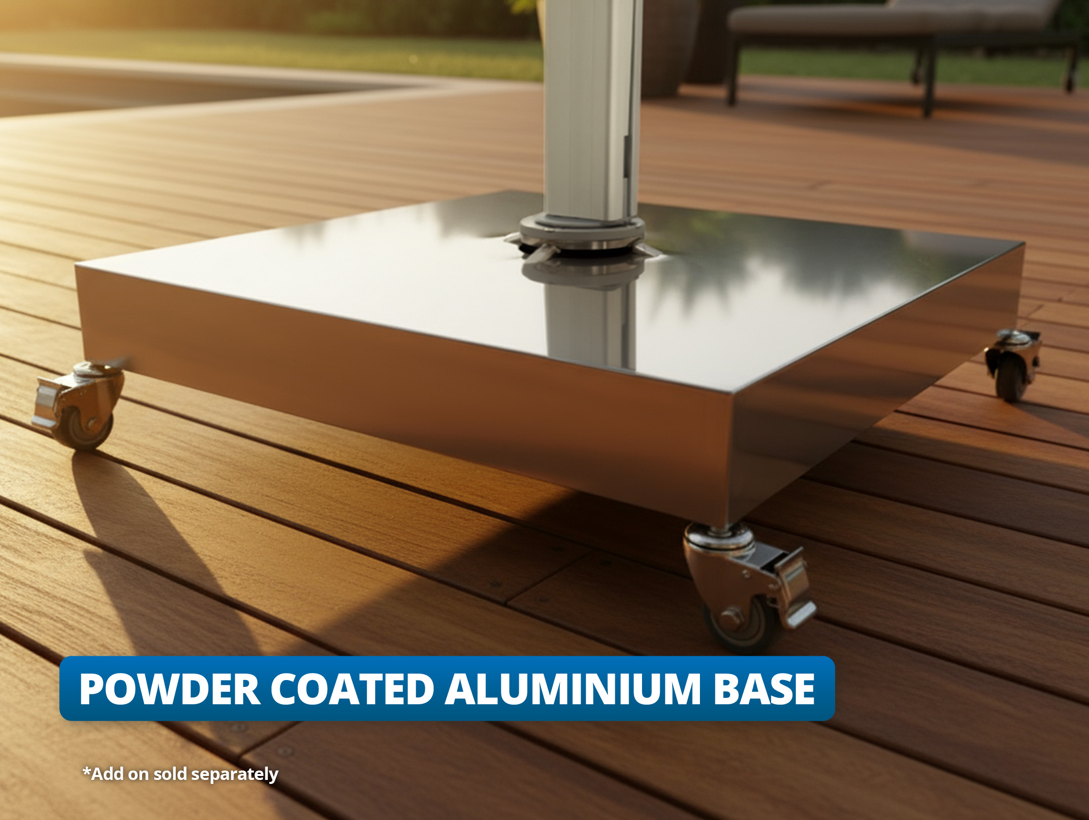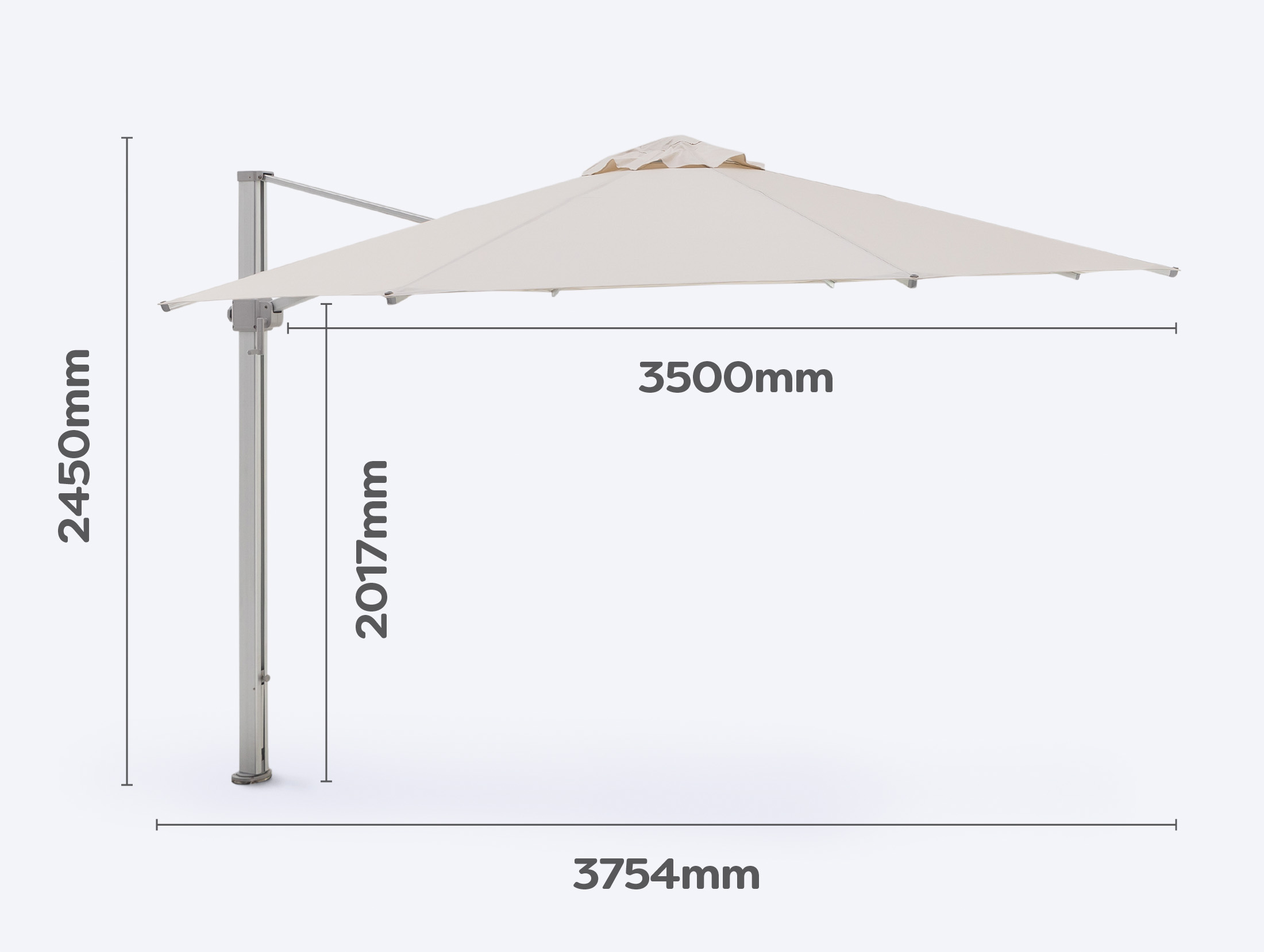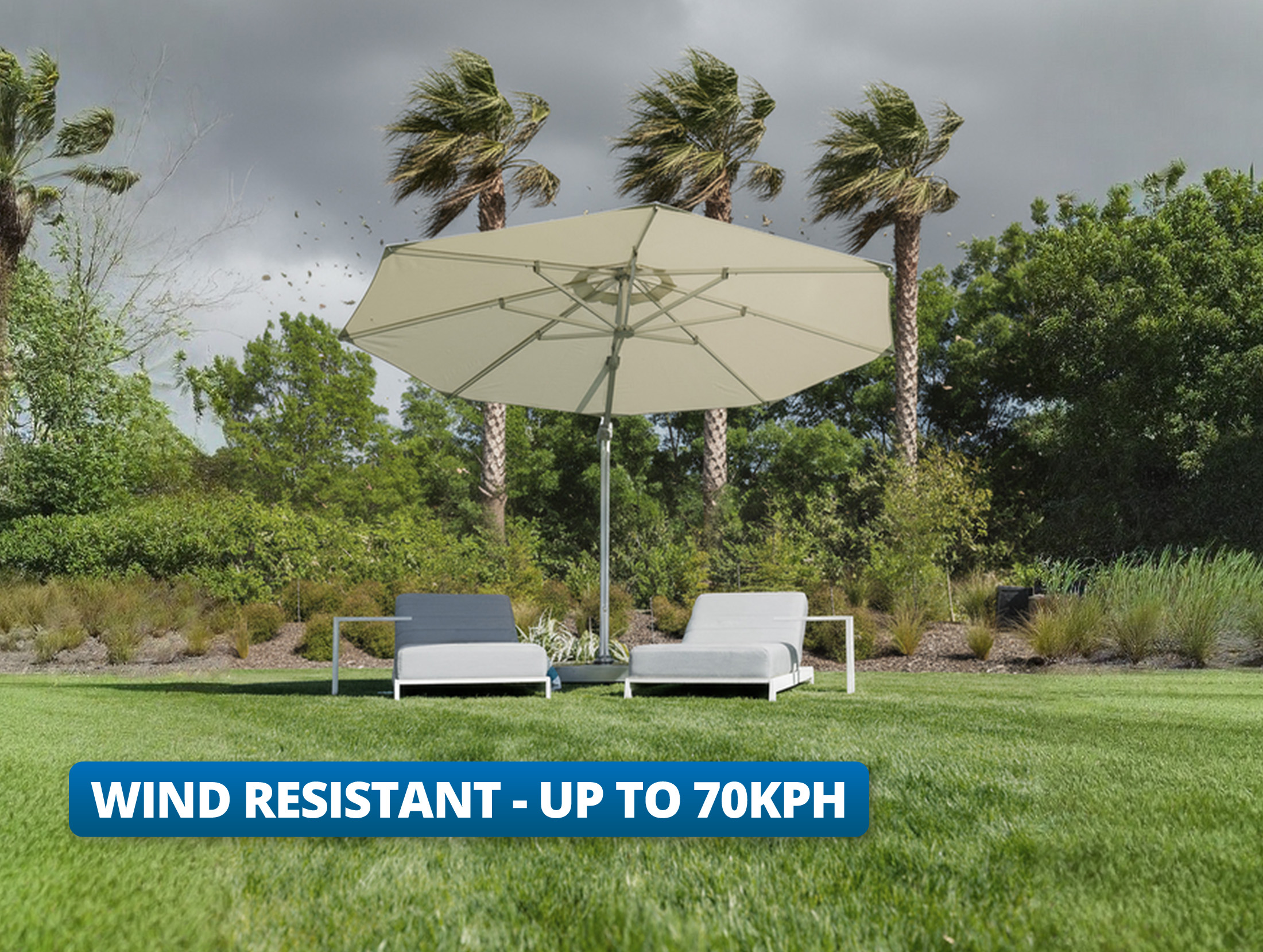 Our Cantilever Umbrellas use only the best materials on offer which ensures they’re built to endure the elements in your backyard. These Umbrellas are backed by impressive warranties to provide peace of mind that your new Umbrella will stand the test of time.
