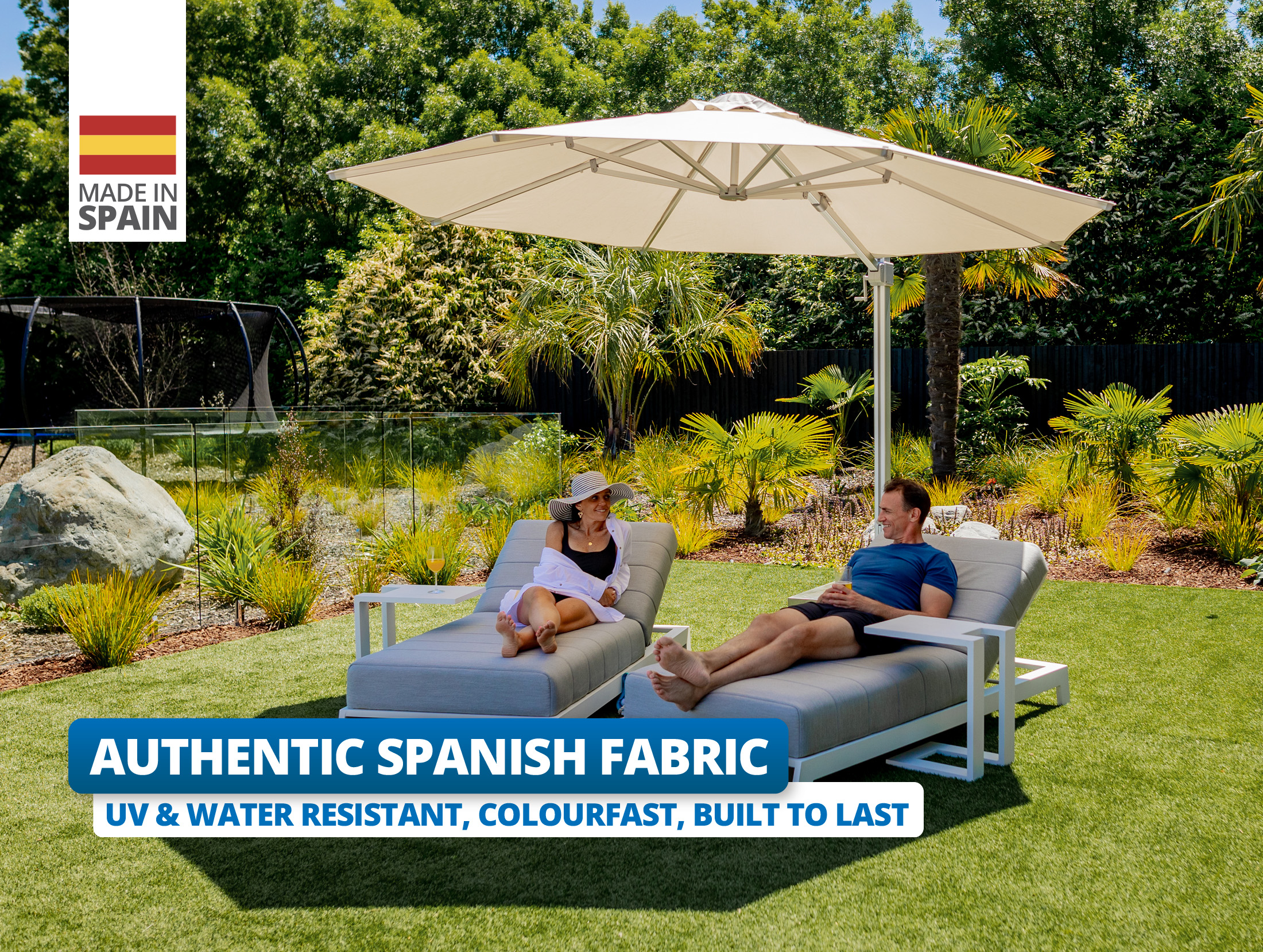 Our Cantilever Umbrellas feature an ultraviolet protection factor of 50+, the top tier of UV protection.