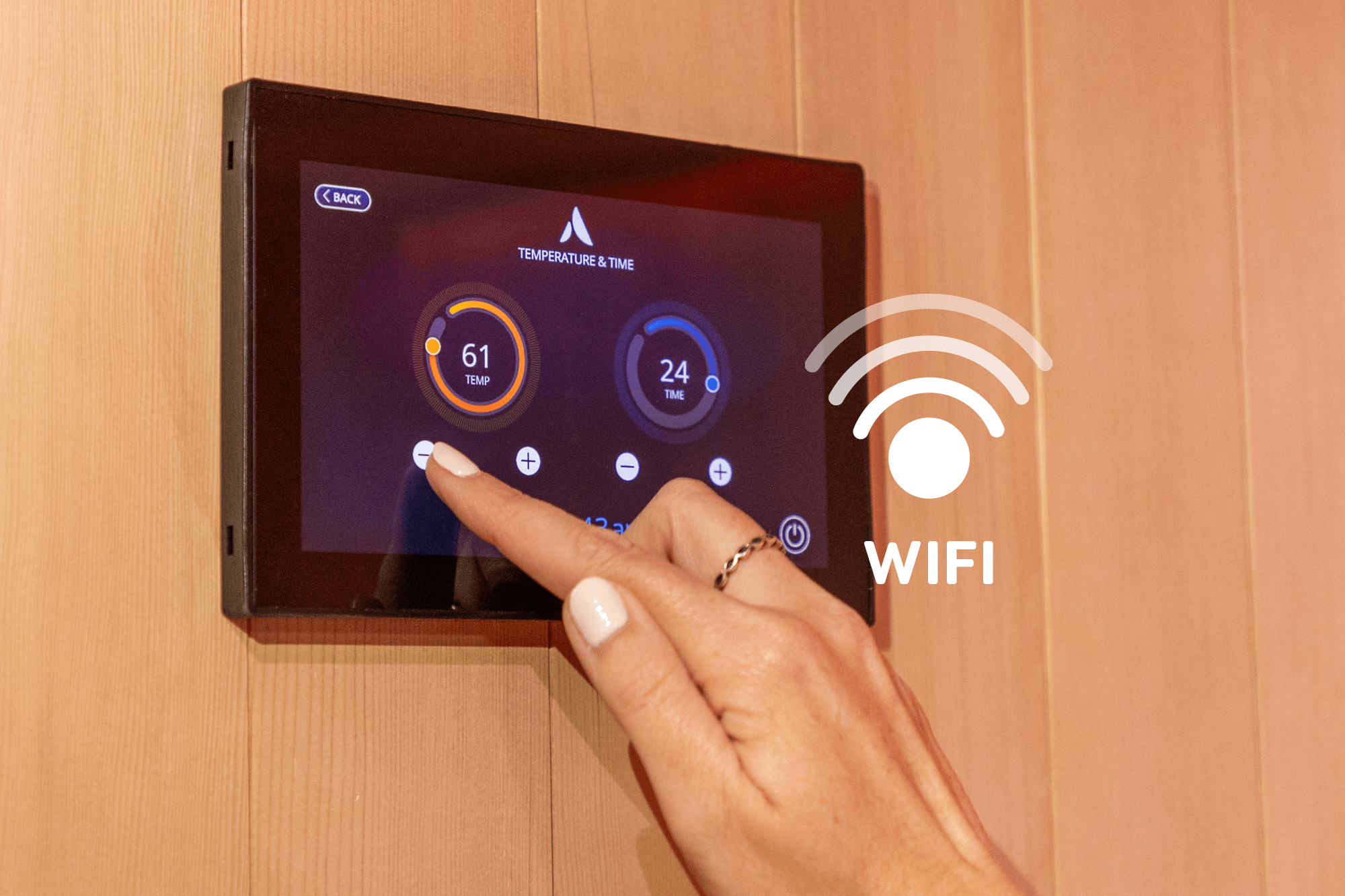 WiFi TouchPro™ is a premium control panel allowing remote access via smartphone. Adjust lighting, temperature, and heater settings easily from anywhere—making your sauna experience seamless and personalized.