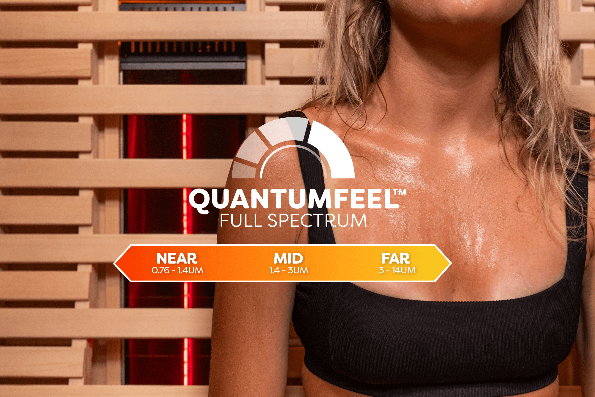 The QuantumFeel™ full‑spectrum heaters deliver near, mid, and far infrared light, targeting different layers of your body for enhanced circulation, relaxation, and detox. You feel it on surface and deep within.