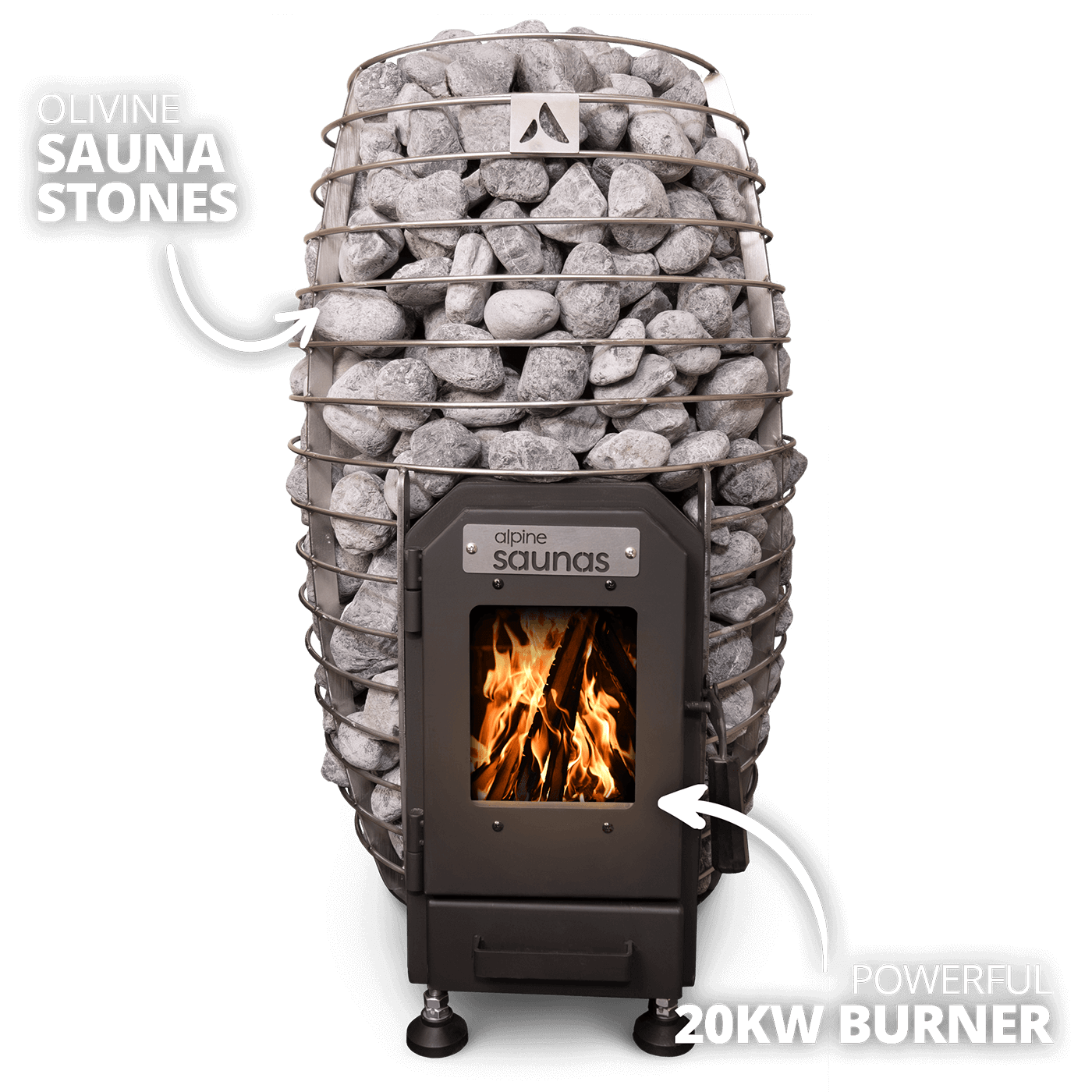Alpine Saunas use Rough Cut Olivine stones, mined in Western Finland. They’re impurity-free, heat evenly, and store warmth for longer—perfect for creating consistent, hot steam when paired with water. Their durability means they won’t crack or break down under repeated heating and cooling.