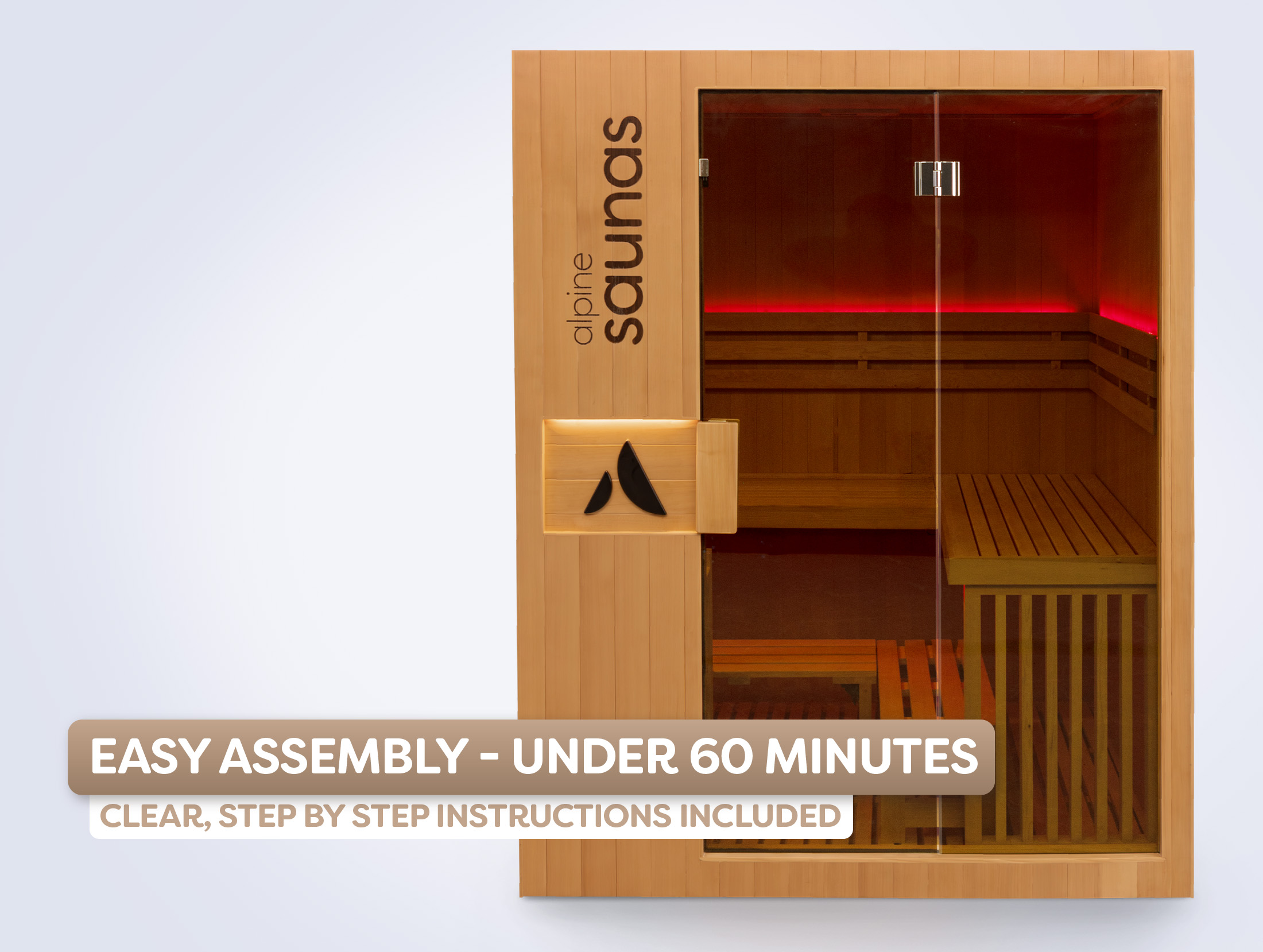 Our Sauna’s simple click-in-place design makes assembly quick and easy, taking approximately 60 minutes*. The sections slide into place, secured with clips and screws, making it simple to move to a new location.