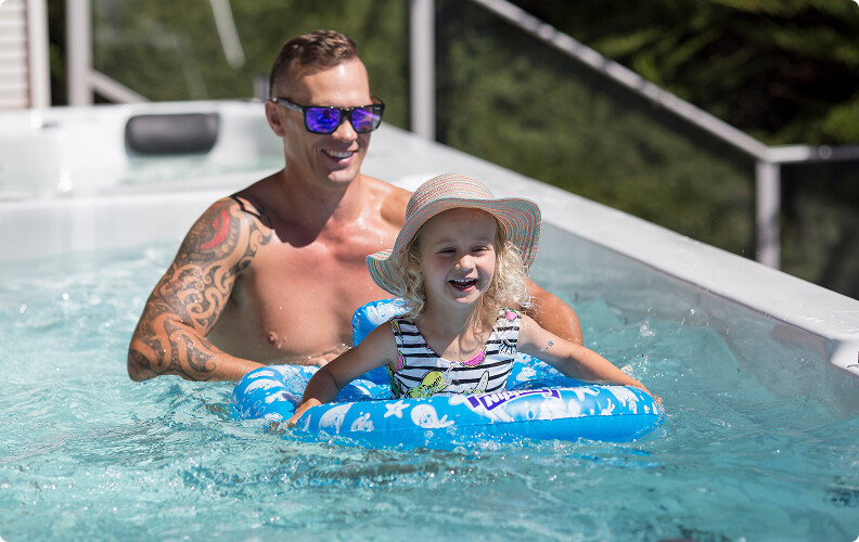 Our Triumph Swim Spa is a customer favourite, combining fitness, recovery, and family fun in one.